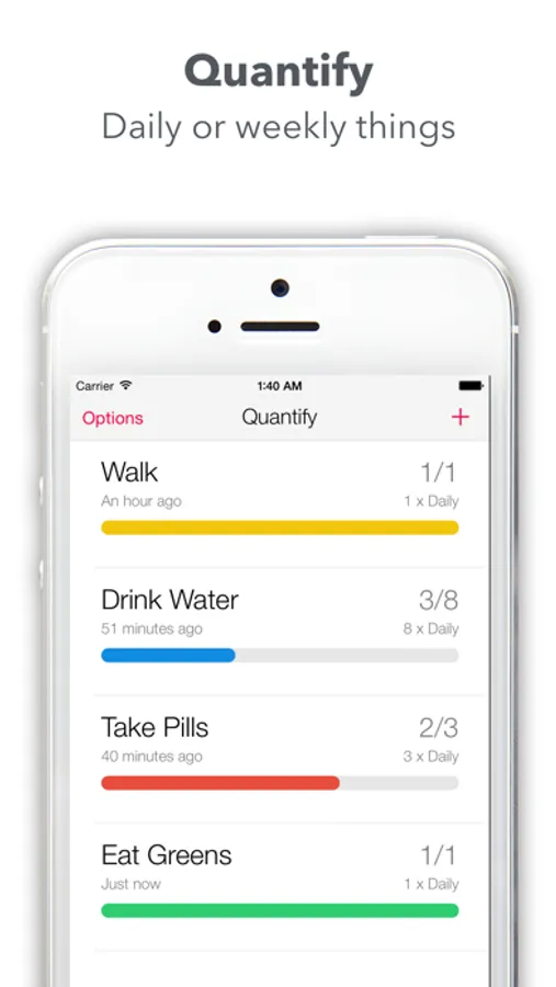 Quantify has been carefully developed over many years and the result is a very simple app. We have remove all clutter and made the app really easy to use.