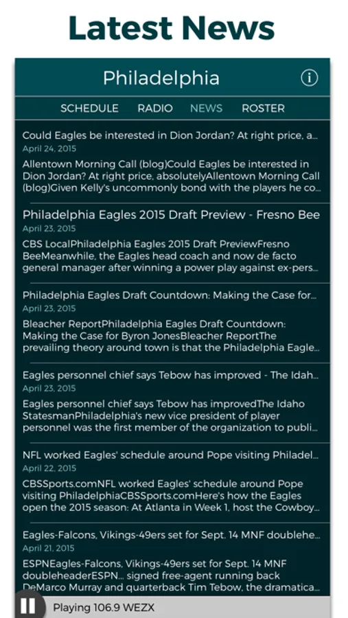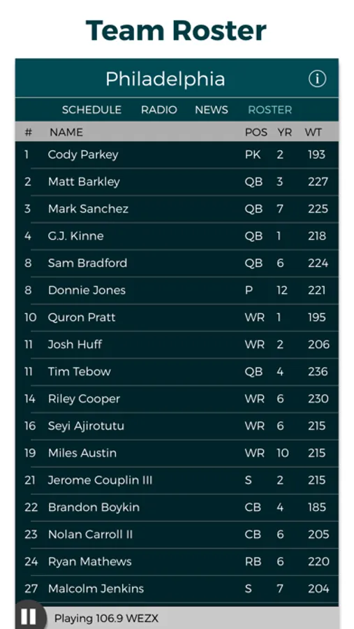 Philadelphia Football Radio & Live Scores is the ultimate football app! Enjoy live streaming of Philadelphia game audio, track live scores, enjoy comprehensive play-by-play coverage, track your favorite players with a complete team roster, follow the Philadelphia schedule, and enjoy the latest news and videos! Philadelphia Football Radio has everything for even the most diehard fan!