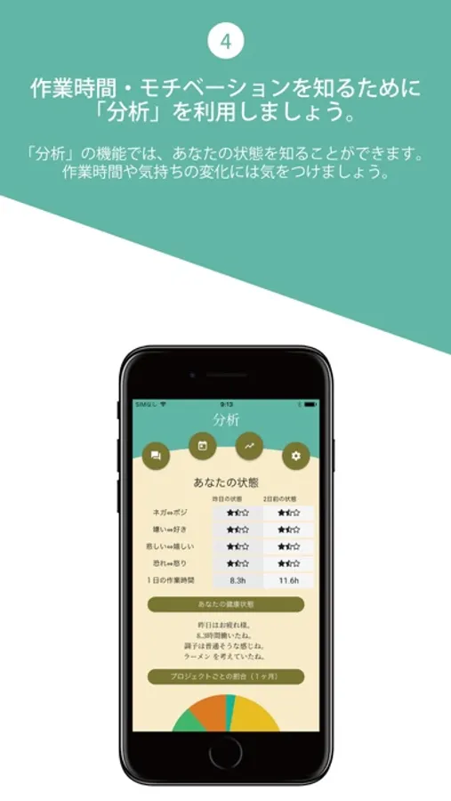 あなたの状態を知ることができます。作業時間や気持ちの変化には気をつけましょう。