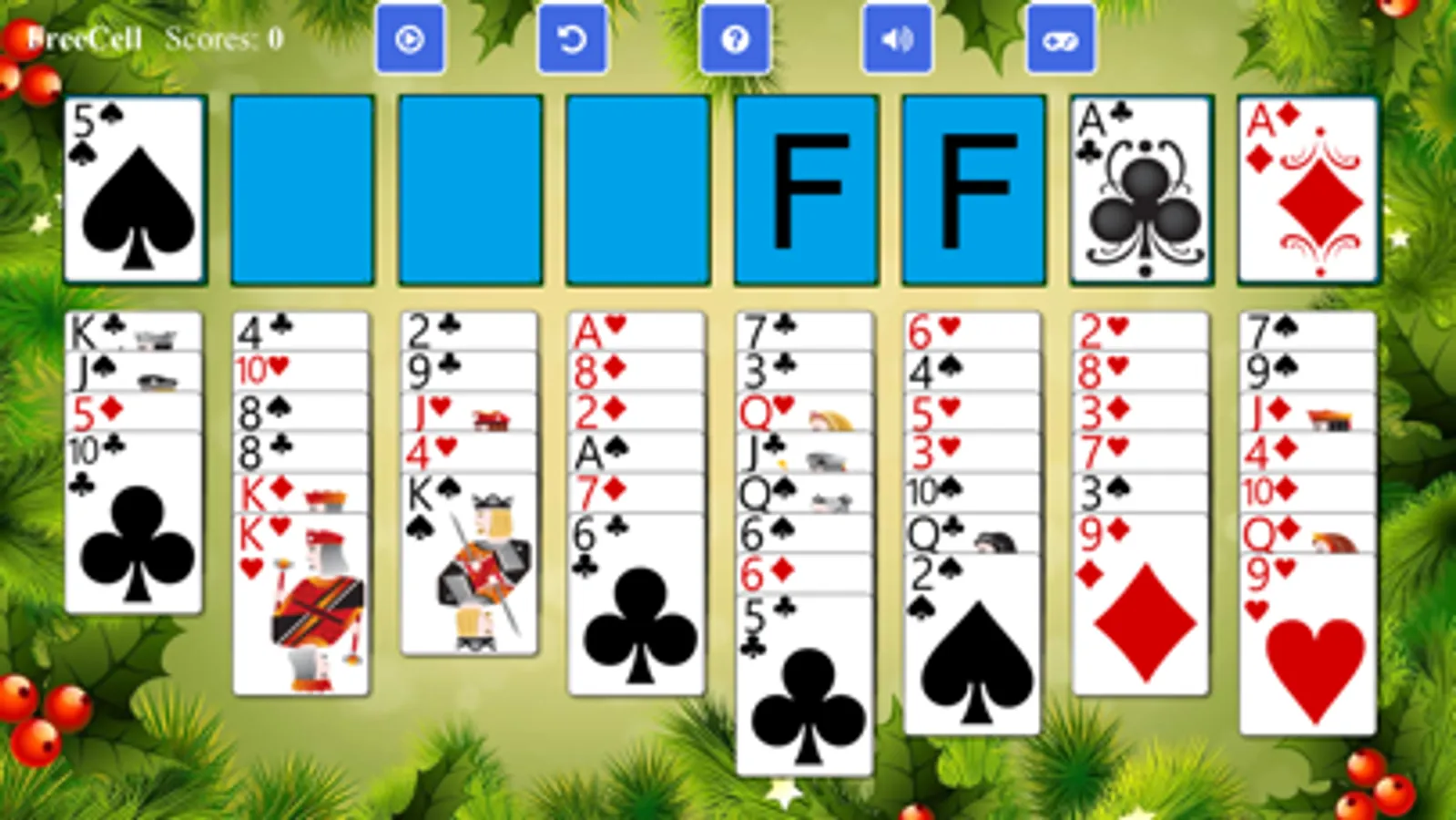 The object of FreeCell Solitaire is to build the four HomeCells(top right side) up in ascending suit sequence from Ace to King with the help of four FreeCells(top left side).