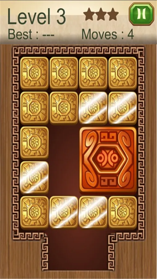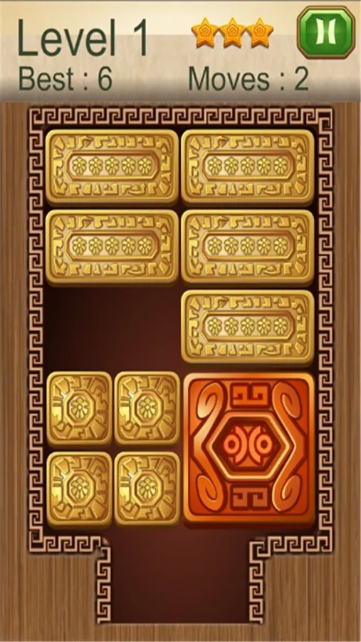 The goal is to get the red block out of the board by sliding the yellow blocks out of the way.