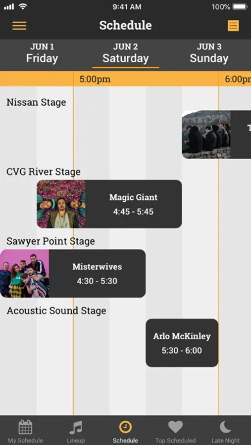 The Bunbury app allows you to view the entire schedule of performances, save a personalized schedule, and navigate around the festival grounds seamlessly.