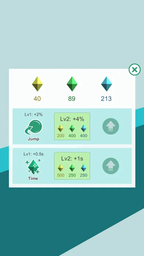 You can upgrade the ball's jumping distance and duration of crystal effects.