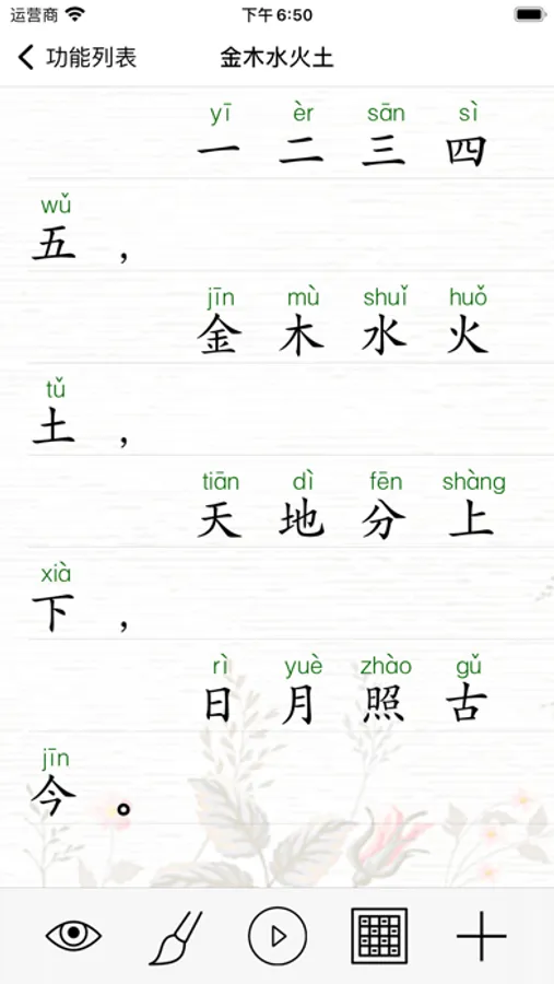 “九、为、方、入、门、绿“等简单常用的汉字,写起来却容易笔顺错误。从开始就养成正确的书写习惯非常重要,本应用严格遵守国家语言文字工作委员会和国家新闻出版署发布的《现代汉语通用字表》的字形结构和笔顺,让学生快速正确掌握汉语的听说读写。