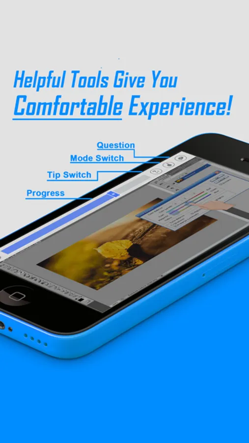INTERACTIVE TUTORIALS FOR PHOTOSHOP CS5 brings you simple, funny, interactive learning app for photoshop. The app teaches you about each of the features of Photoshop CS5 and show you how to use them in detail. With candid, jargon-free advice and step-by-step guidance, you’ll get everything from the core aspects of working to advanced techniques for refined workflows and professional results. It's like having your own personal tutor teaching you the newest version of Photoshop. You'll learn how you can use photohsop to express yourself and fine tune your images quickly and directly! It’s the first and only app to bring the whole process together in such a clear, concise, and interactive way. There is no faster, more straight-to-the-point, or more fun way to learn Photoshop than with this app.