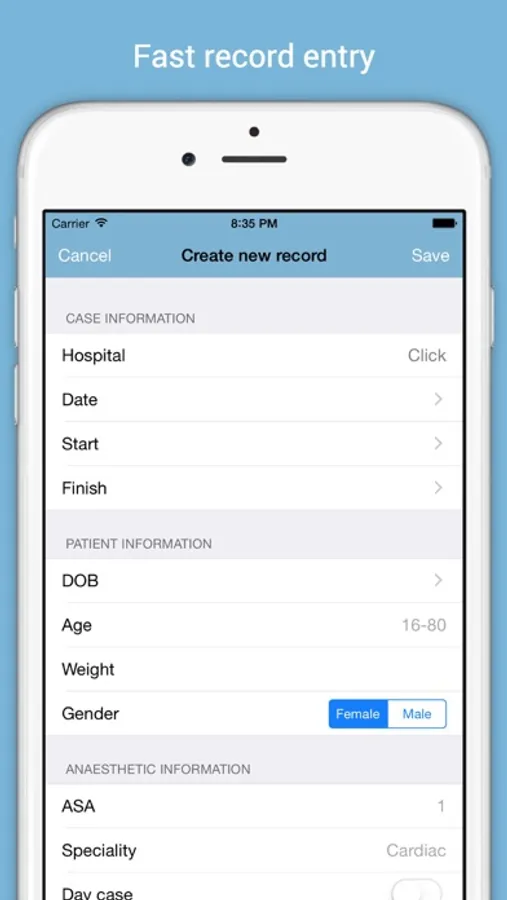 Log4AS is a simple logbook, which provides an intuitive user interface and key word suggestion for fast record entry. It can capture all the required information in an operation and is helpful for professional anaesthetists worldwide.