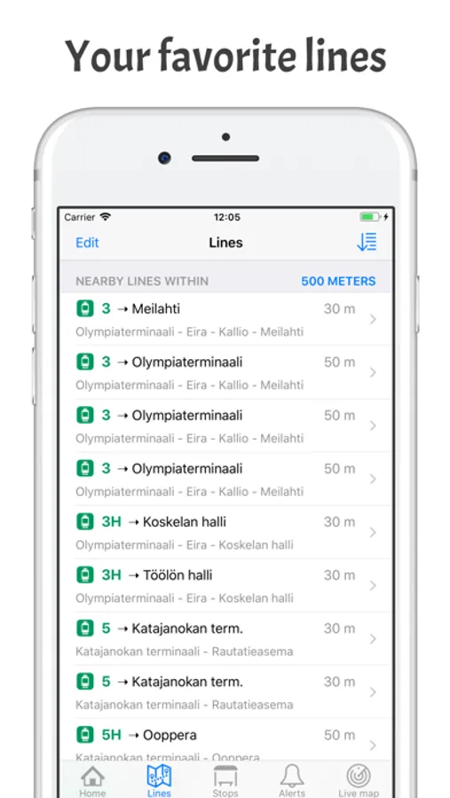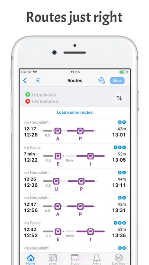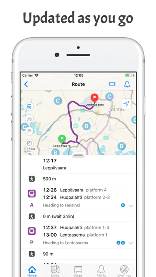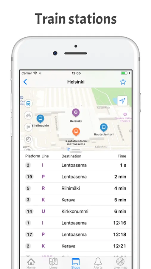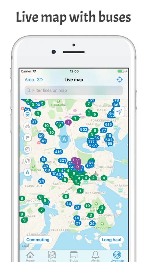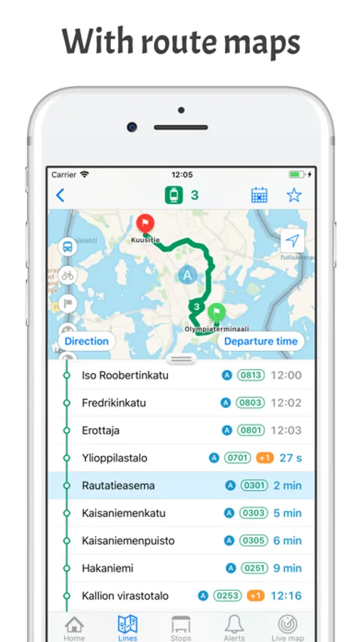 - Live Map displays all vehicles, including buses and trains (Helsinki, Joensuu, Jyväskylä, Kuopio, Lappeenranta, Oulu, Tampere and Turku)