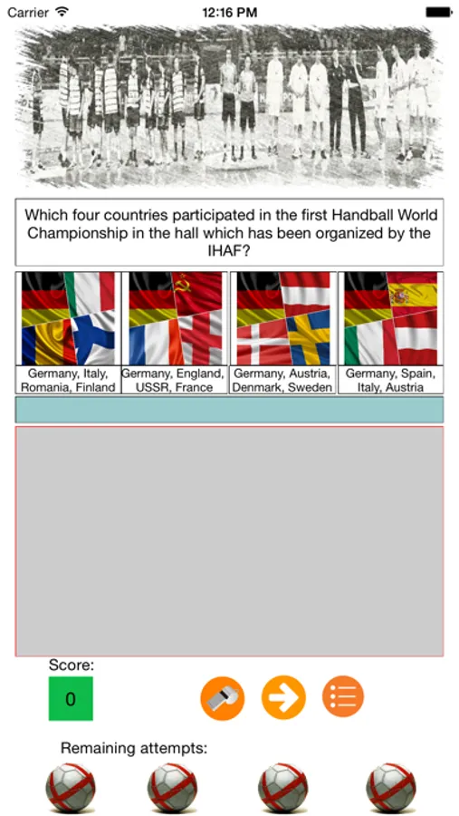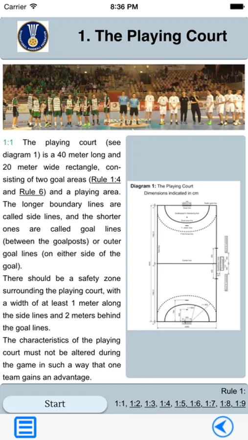 Whether you are a Handball Referee, Handball Player or even just a fan, this app gives you the possibility to have the rules of the game always with you! After learning the rules, take the quiz and try to answer as many questions correctly as possible. The app will ask you questions and it gives you an evaluation of your knowledge immediately after the last of the questions. The app contains all the 332 official questions of the IHF/EHF.