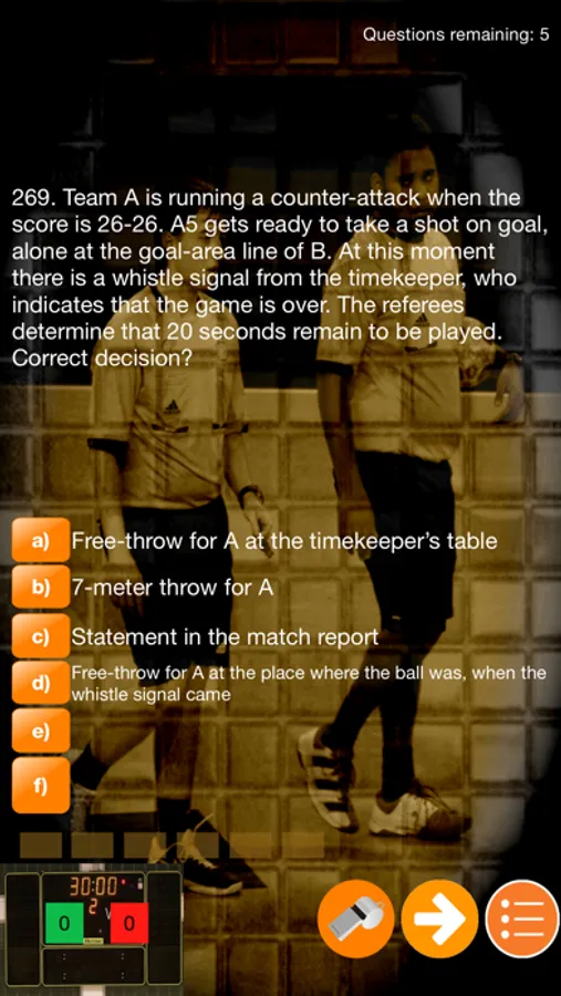 L'application contient tous les 332 des questions officielles de l'IHF / EHF.