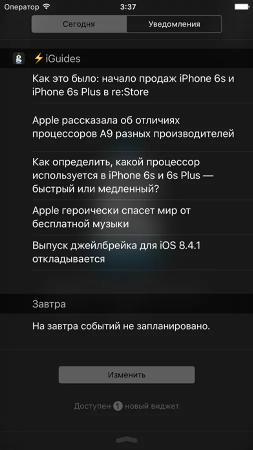 Моментально узнавайте о последних новостях iGuides через push-уведомления или из виджета на экране «Сегодня».