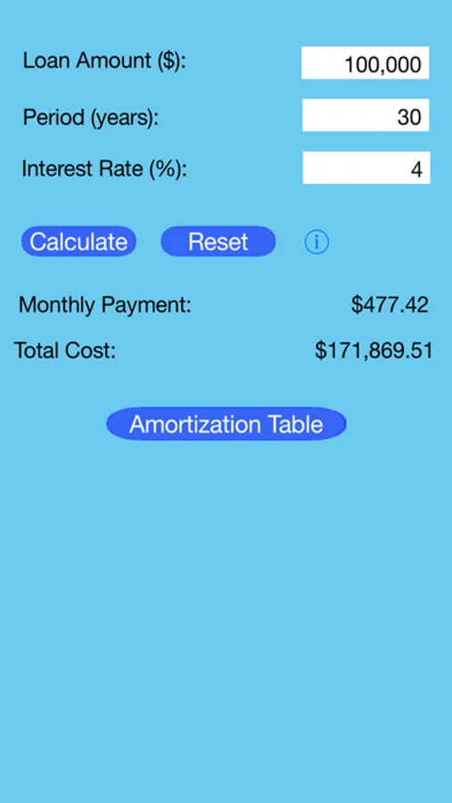 A simple calculator to determine the monthly payment for a loan. Just enter the loan amount, the term, and the interest rate and calculate a car loan, mortgage, or any other loan. Optimized for the iPhone 5, 5s, & 6.