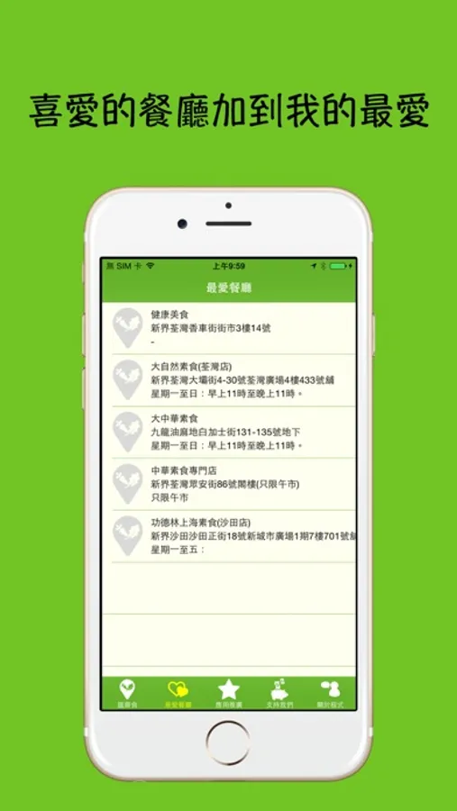 另外,亦可把您喜愛的餐廳加到我的最愛,方便下次再查看;如您發現有任何新開的素食餐廳不在我們的資料庫內,可向我們報料,我們會不繼更新。