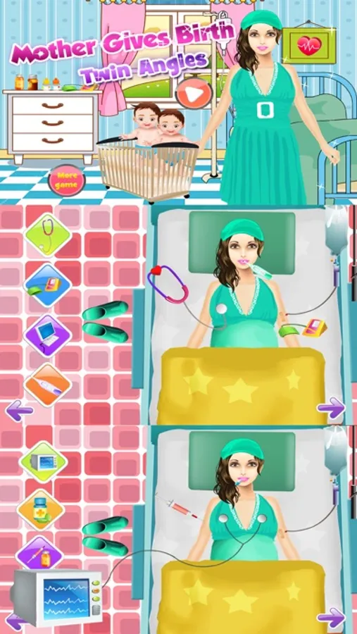 Hello girls ready to play full of fun twin babies care game. Mommy is about to give birth to two baby boys. You have to take her to best hospital in town and get her a treatment by a professional doctor with best surgery tools, whereas you will be taking care of mommy and babies health.