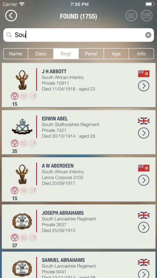 The app is a powerful tool that allows you to search for all the soldiers (almost 55,000) who are mentioned on the Menin Gate and this with a link to a detailed map of the Menin Gate that allows you to quickly find the panel on which the individual soldier is commemorated. Only the soldiers on the Menin Gate are part of this app. The database has been provided by the Commonwealth War Graves Commission (March 2015).