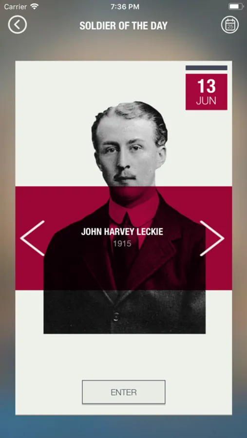 Finally the app offers almost 400 individual stories of soldiers. For each day of the year, one or more detailed stories are available. Through a calendar, you can quickly pick a date.