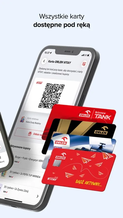 • od teraz na stacji zidentyfikujesz się jednym kodem QR, zawierającym kartę VITAY, KDR, BiznesTank oraz aktywowane kupony