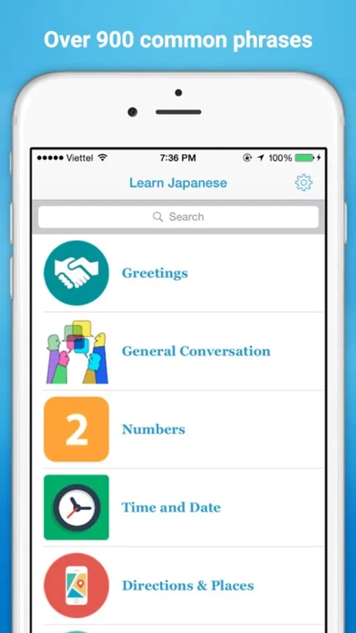 + Search function is very useful when you want to speak common English in Japanese. Just type "phrases in english" and tap on sentences and you will see phrase in Japanese.
