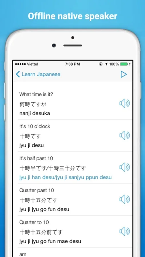 Repeat this process to perfect your Japanese. Improve your fluency, train your pronunciation and learn some great phrases and vocabularies.