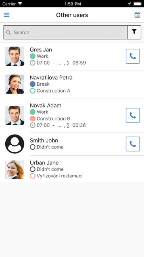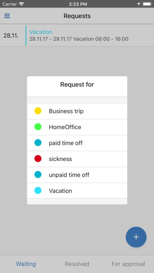 Also Attendance Requests (vacation request, doctor request, ...) can be sent directly to cloud application where it can be later approved or rejected by the responsible person.