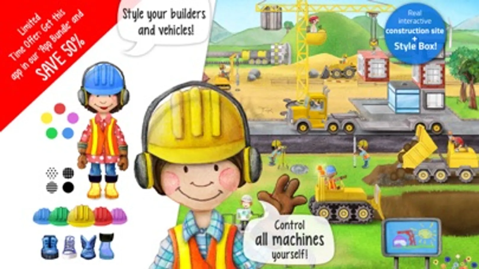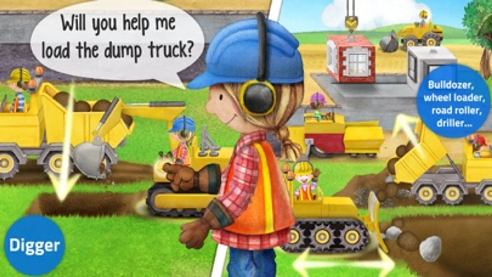 You love construction sites and equipment? On our construction site, you can operate the crane, the digger, the bulldozer, the wheel loader, the tunnel drill and many other machines yourself and control them with your finger. And best of all: you can customize the look of the little builders individually.
