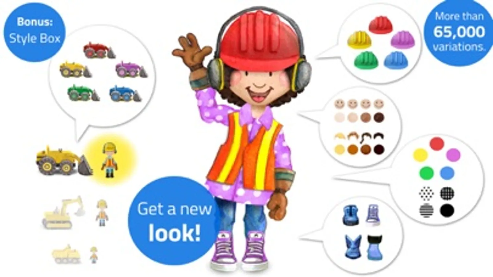 • Striped or checked? You can dress the builders as you like: hair, face, helmet, shirt, pants, shoes – everything can be customized individually.