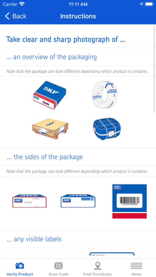 - Clear instructions on how to photograph the product and automatically submit a request, all in one process. Dedicated SKF experts then review the information, verify if the product is counterfeit, and let you know.