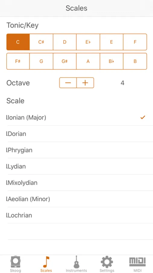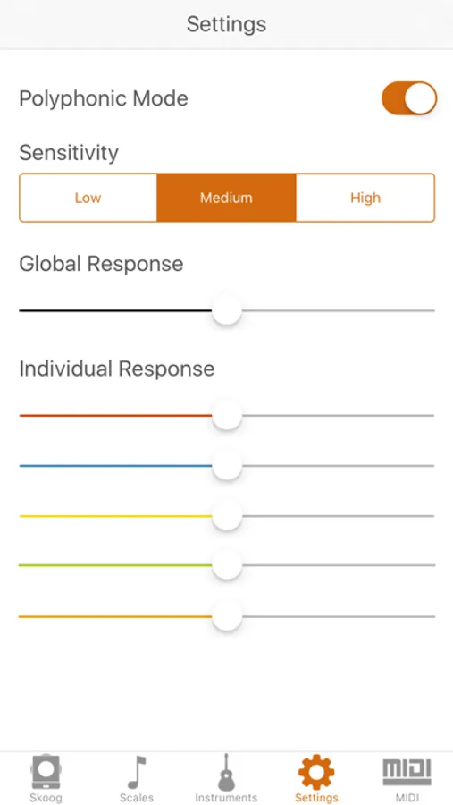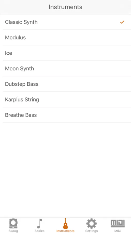 Skoog is a free app that works with your Skoog 2.0 device. The app easily connects wirelessly via Bluetooth® Low Energy to your Skoog. You can select from a range of different instruments and explore scales, as well as adjust the sensitivity settings to your preferred set-up. Jam with your favourite tracks instantly. The app integrates with your Apple Music library or Spotify premium account and automatically tunes your Skoog so you can play with the music you love.