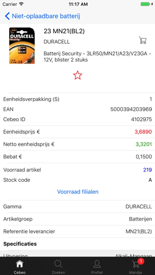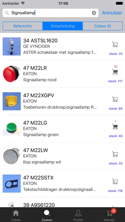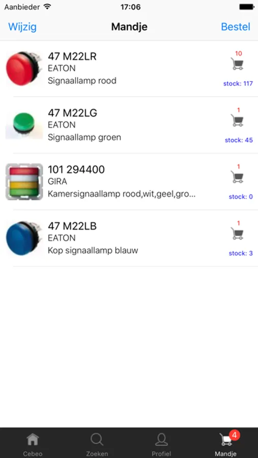 • opzoeken van voorraadartikelen en deze toevoegen aan het bestelmandje