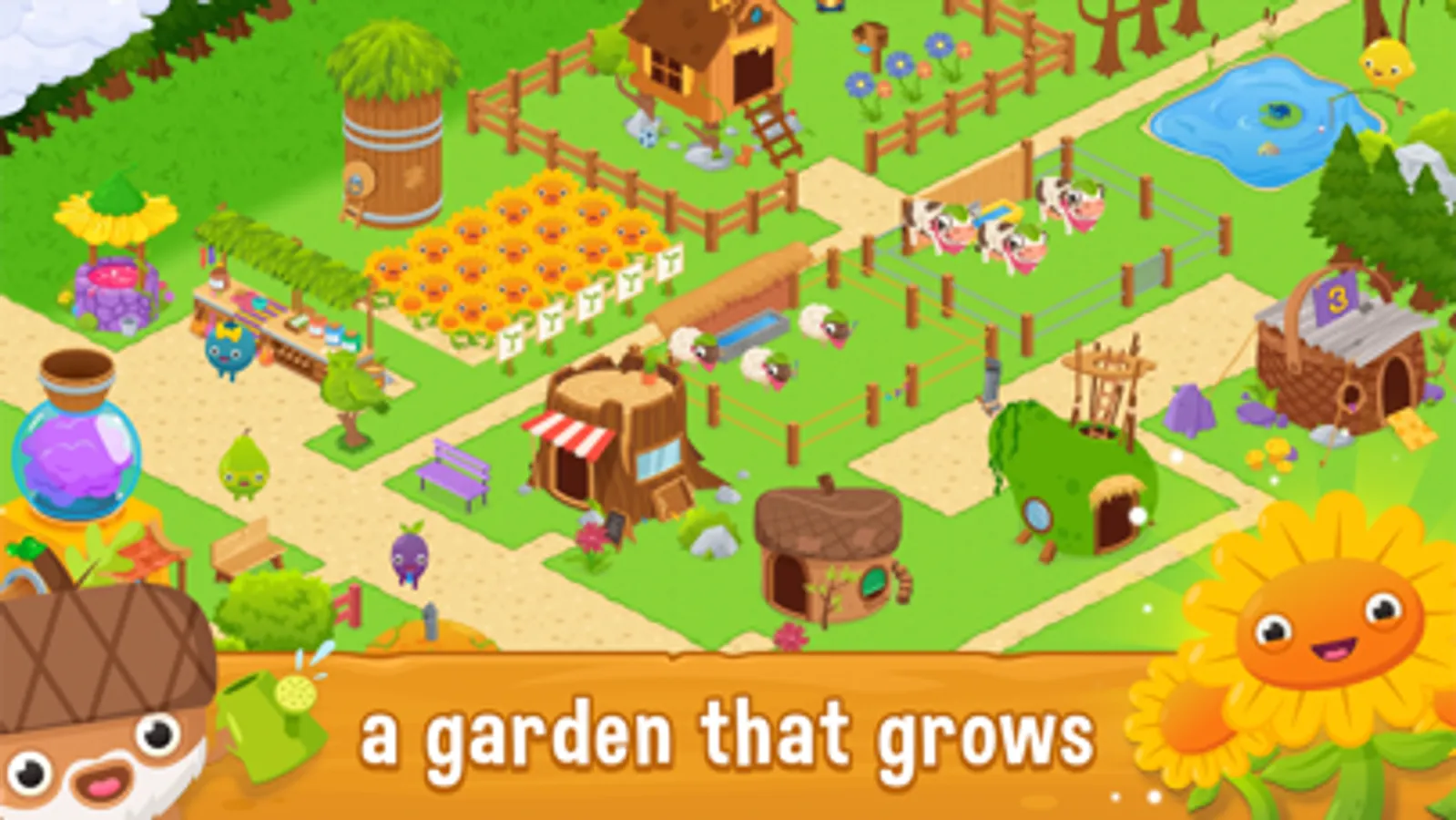 • Match fruits and collect coins to beat levels, then use them to expand and decorate your garden.