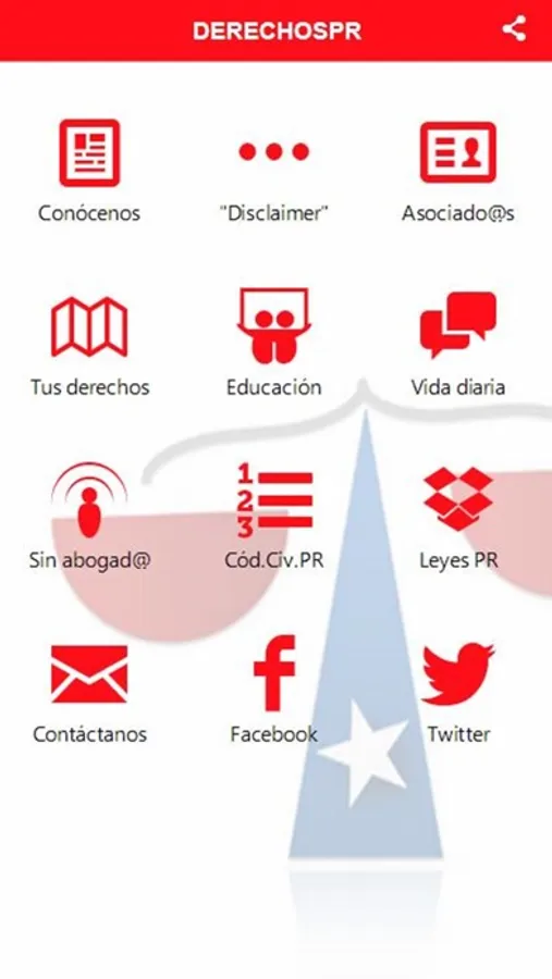 · La aplicación móvil DERECHOS PR contiene información legal para educar a todo público. En específico encontrará iconos interesantes tanto para Estudiantes, Abogad@s y Toda Persona que quiera aprender sobre sus derechos.