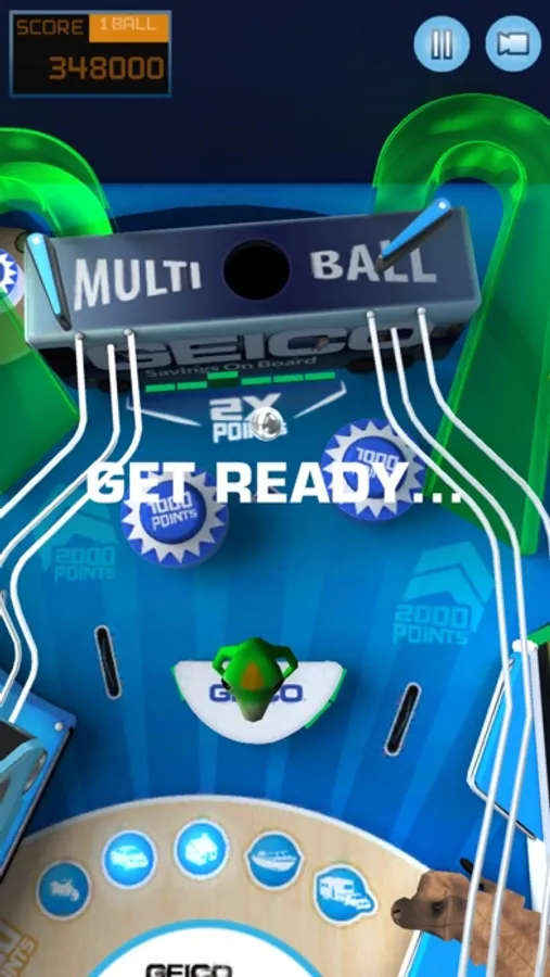 GEICO Pinball features fun and interactive play featuring your favorite GEICO mascots including the GEICO Gecko, Caleb the Camel, and Maxwell the Pig. 15 minutes could save you 15% or more, please visit GEICO.com for a free rate quote.