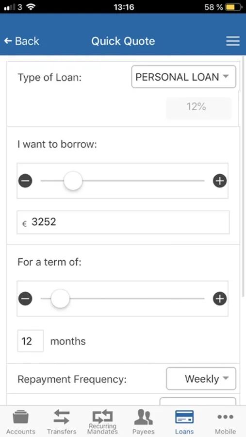 - Quick loan facility with live repayment estimations
