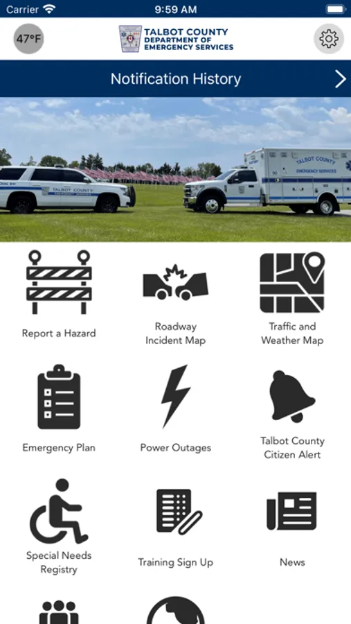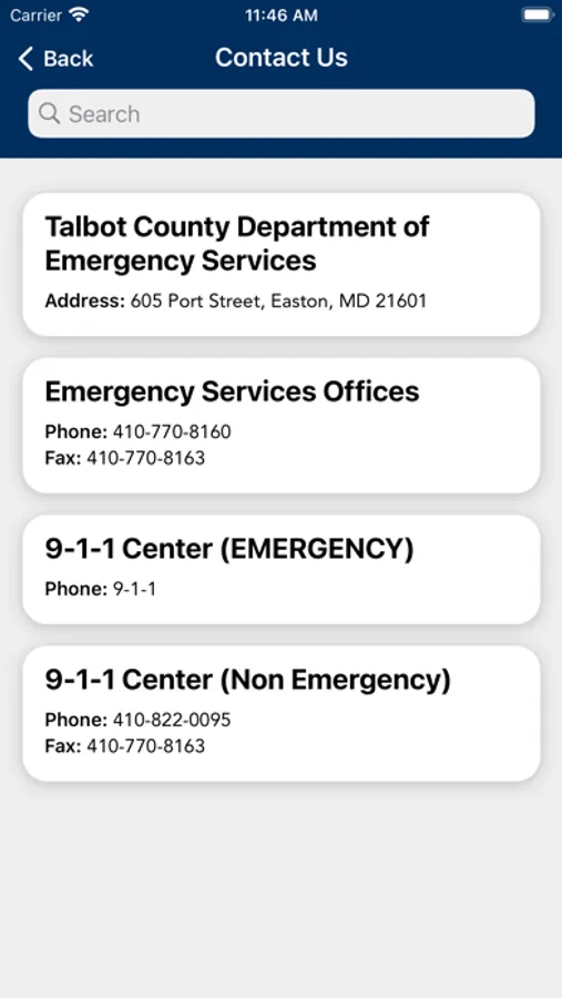 The Talbot County, Maryland, Emergency Services mobile application is an interactive app designed to improve communication, preparedness and resiliency for our citizens. Some of the items featured in this app include emergency alerts, local weather events, social media, contacts, and preparedness guidance. The Talbot County MD Emergency Services app can aid in preparation in the event of an emergency. This app is not meant to be used to report emergency situations. If you experience an emergency please dial 911.