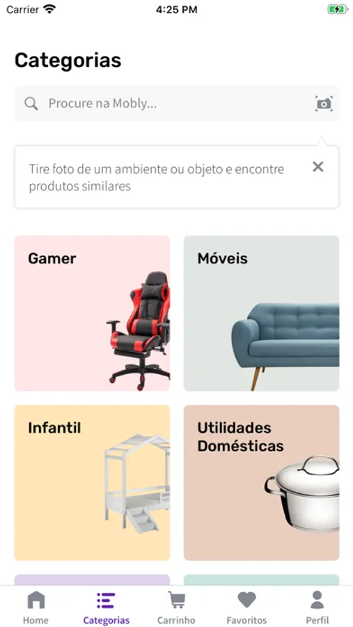 Com o app da Mobly, você deixa a sua casa do seu jeito em poucos passos e com muita tecnologia. Tenha uma experiência de alto nível através de nossas features: projeção de produtos em 3D para saber se o móvel combina com o seu ambiente; inspiração com nossos ambientes decorados e estilos.