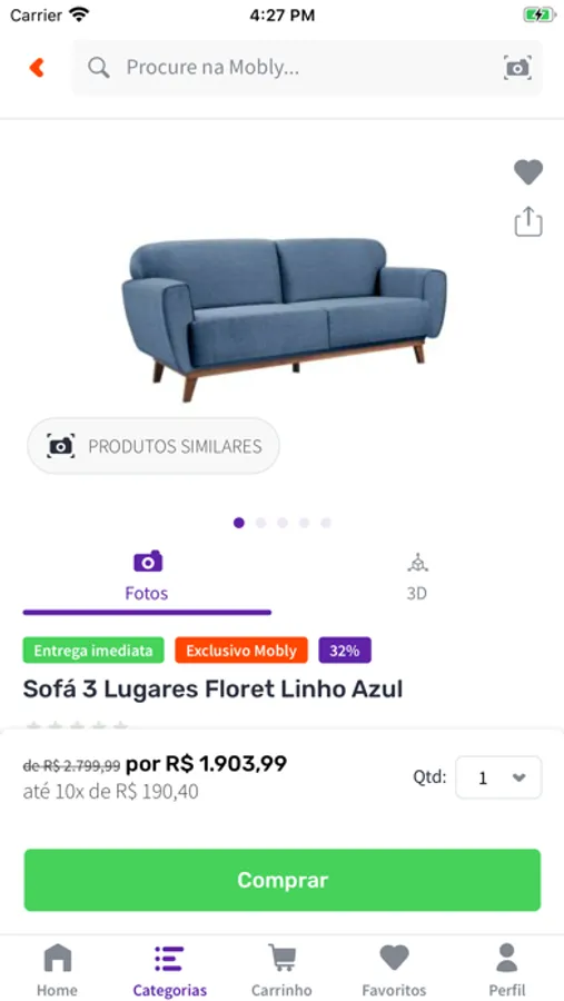 • Produtos 3D - Através da câmera do seu celular, faça a projeção do móvel em seu ambiente e veja como ele combina com o restante da decoração.