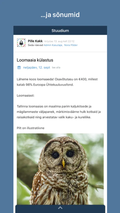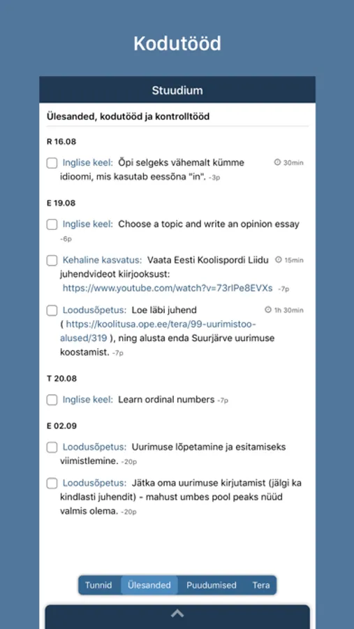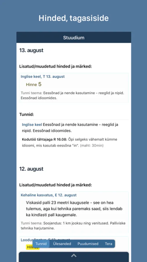 Stuudiumi äpis näed hindeid ja muud tagasisidet, kodutöösid, puudumisi ja suhtluse sõnumeid.