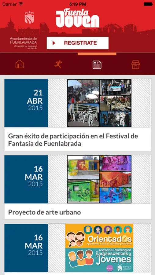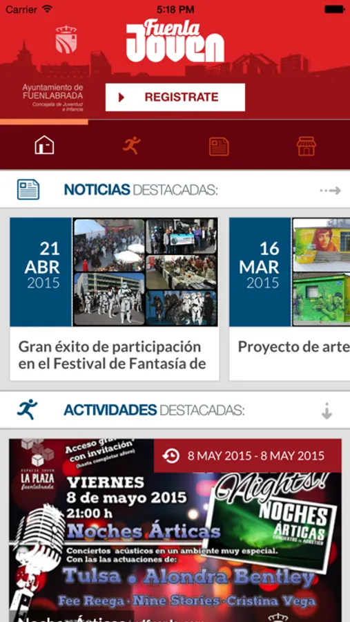La aplicación Fuenlajoven desarrollada para la Concejalía de Juventud e Infancia de Fuenlabrada, es creada con el fin de que l@s jóvenes de Fuenlabrada conozcan toda información de actividades, noticias y puedan conocer de una manera rápida de las ventajas que proporciona la Tarjeta Fuenlajoven.