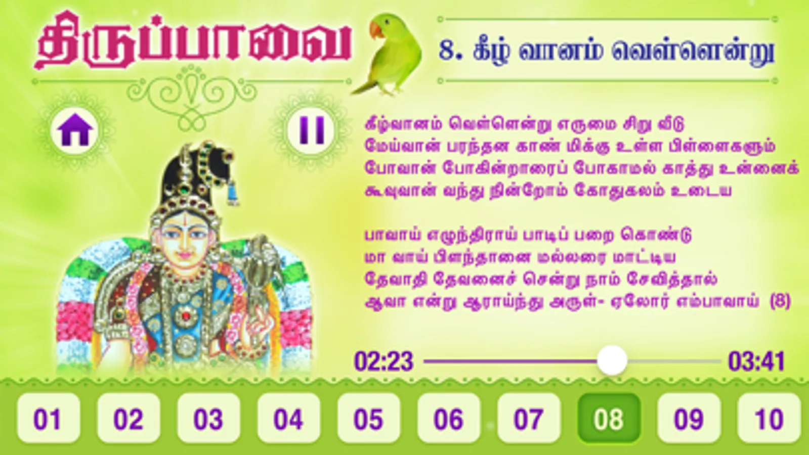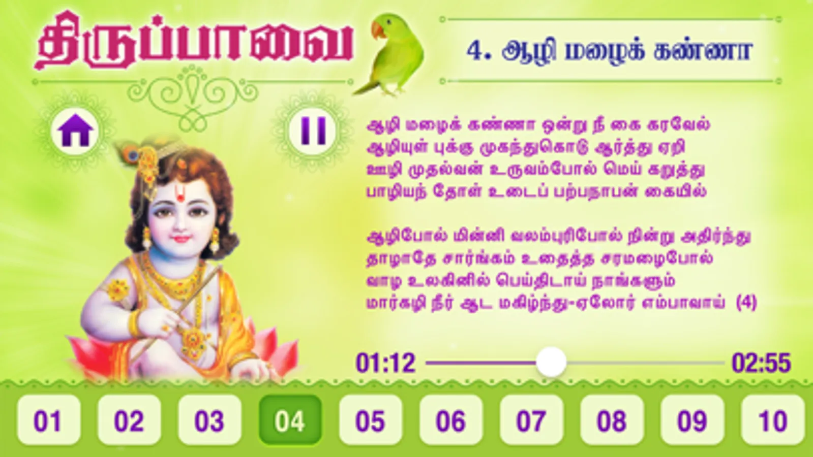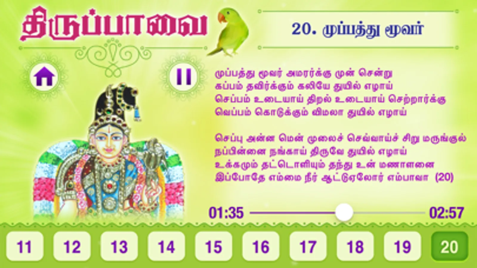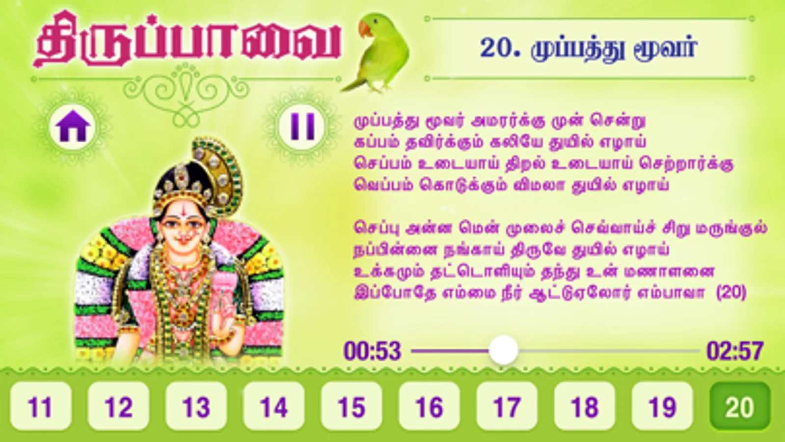 Thiruppavai is composed by Andal, Like many of us might know. She undertakes a vrat much similar to the “Karthiyayani” vrat beginning on the first day of the month of “Margazhi” and adorning each day of the month with a new Pasuram, an eight-lined verse. The thirty verses collectively form the book of “Thiruppavai”. Thiruppavai could be recited everyday to invoke the blessings of the Lord Narayana.