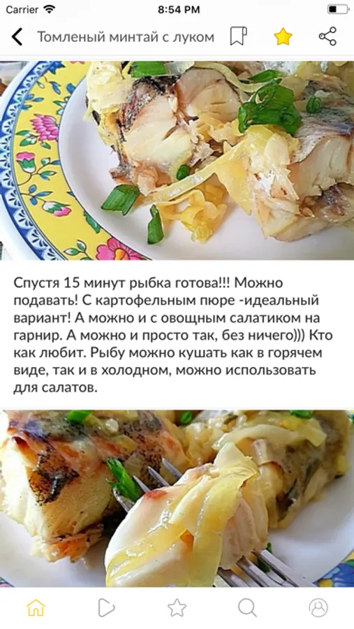 - Удобный просмотр рецептов (описание, время приготовления, количество порций, предназначение, ингредиенты, рецепты, фотографии, видео)