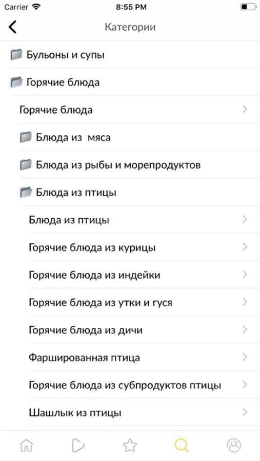- Категории рецептов (бульоны и супы, горячие блюда, салаты, закуски, напитки, соусы, выпечка, десерты и многие другие!)