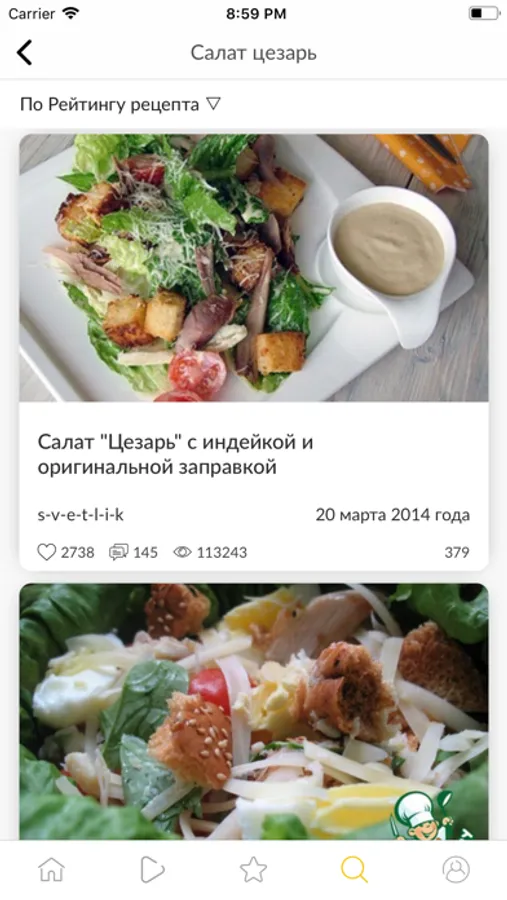 - Сортировка по дате, рейтингу, добавлениям в кулинарную книгу и просмотрам!