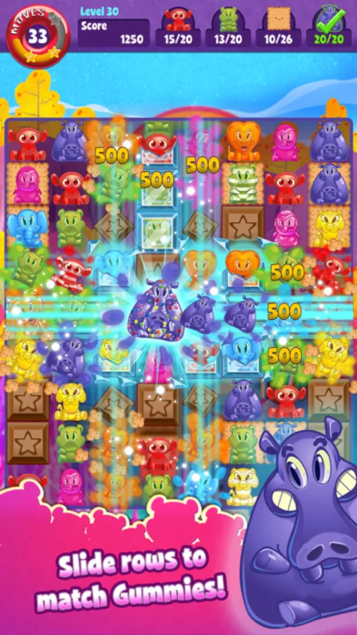 Gummy Blast your way to hours of fun-filled gaming in this delightful new Match 3 puzzle game. So cute and funny you will love the easy to use gameplay, gorgeous visuals and exciting power ups. Can you beat the levels to be a Gummy Pro?