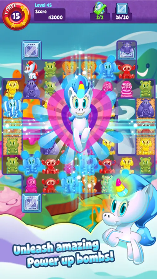 •Make unique power up bombs to help you along the way when matching more than 4 gummies. Discover all bombs including the rare Unicorn and Dragon bombs.