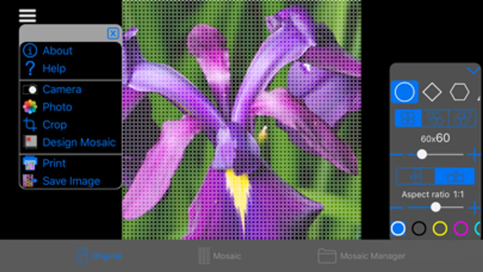 Color Hints Mosaic creates a mosaic or pixelated version of a photograph. The mosaic you create can be shared with others, saved, or printed.