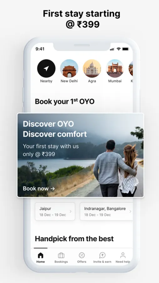 OYO app turns every traveller’s bucket lisOYO app turns every traveller’s bucket list into a reality. Whether a recreation vacation, work trip or a couple’s getaway, with OYO by your side, booking hotels is just 3 steps away. Best accommodation at best prices, OYO is your answer to a hassle-free stay.
