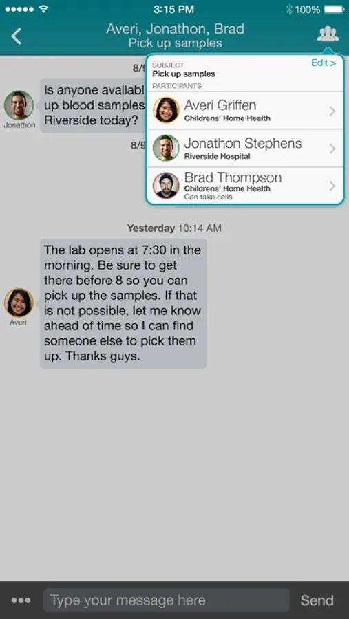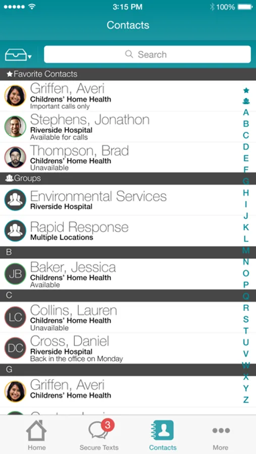 • Enables secure, traceable, HIPAA compliant texting between Vocera Secure Texting and Vocera Collaboration Suite users