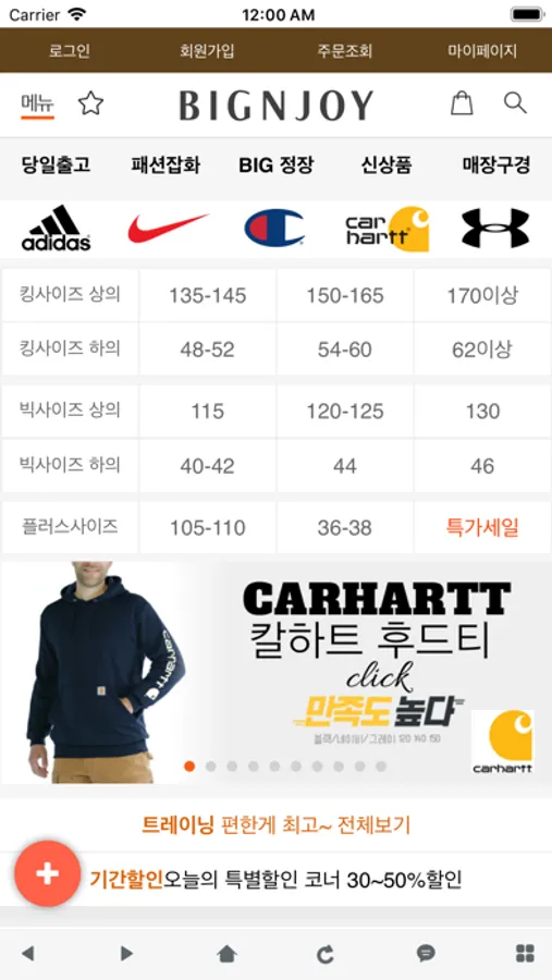 빅사이즈 정장, 캐주얼, 트레이닝, 신발, 모자, 벨트, 언더웨어 판매