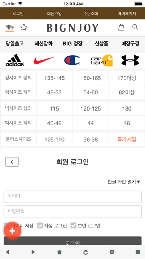 남성전문 빅사이즈 프리미엄 국내 최대 매장(100평)과 쇼핑몰 동시 운영