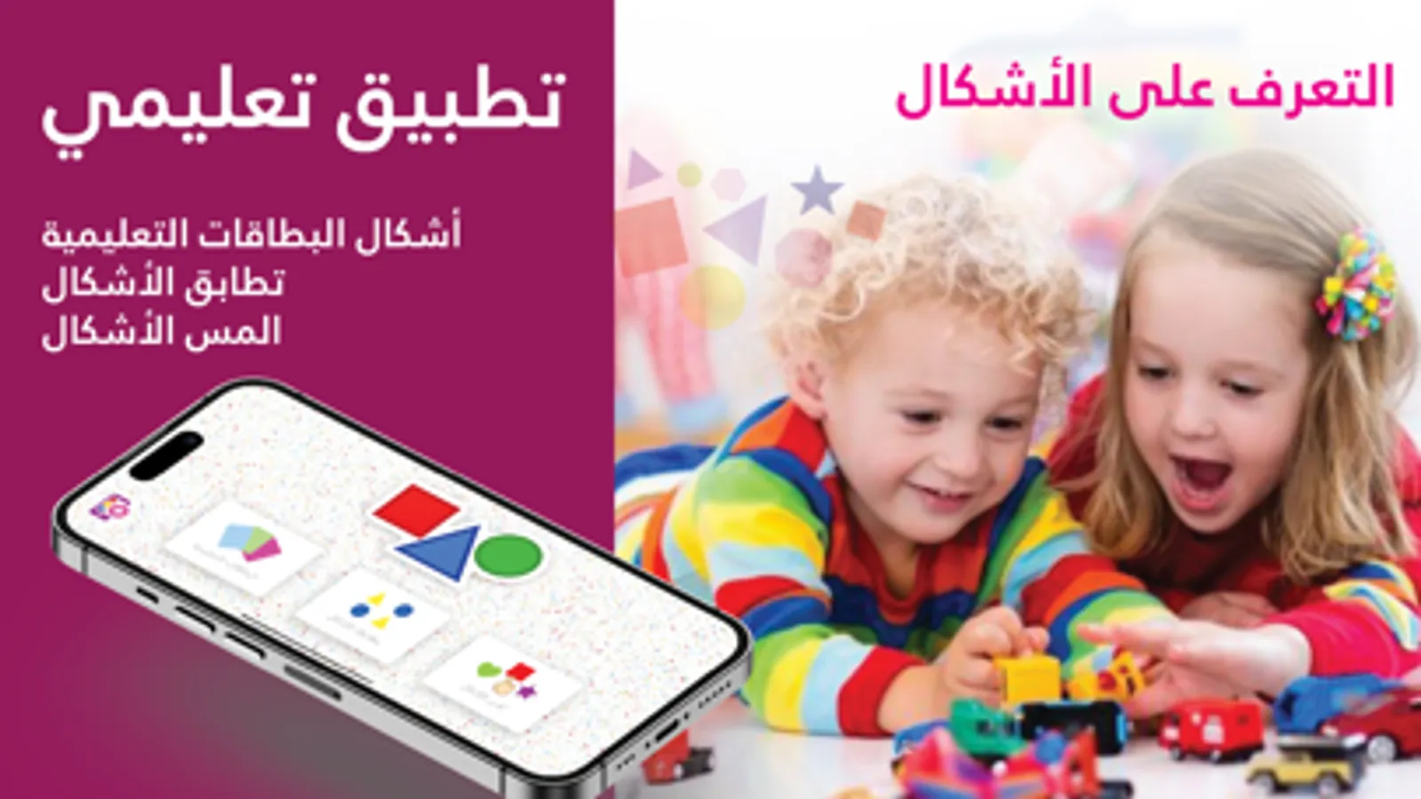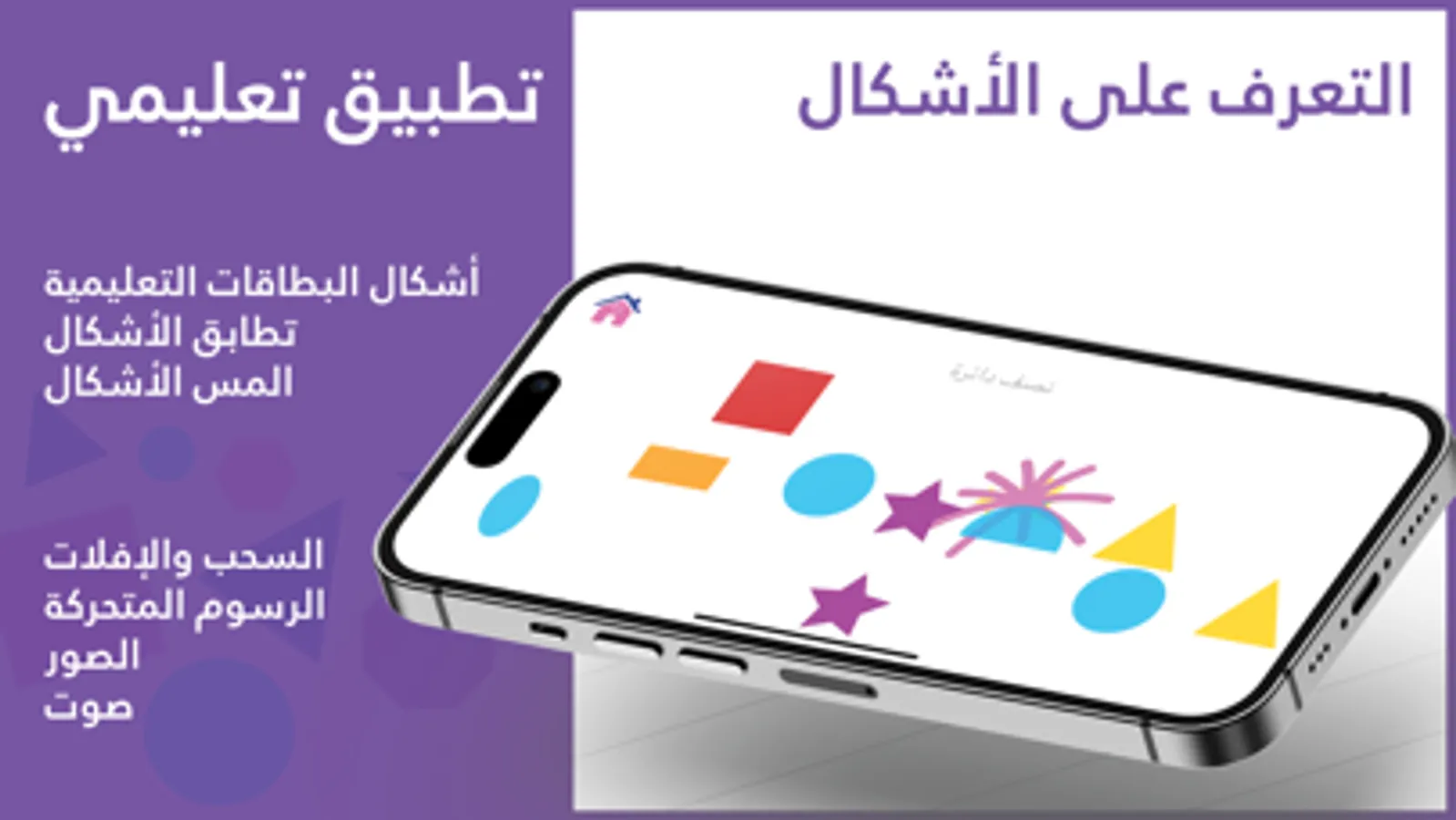 The App is in Arabic Language. Basic Shapes help building the memory and cognitive skills as the brain starts to relate real world objects with the basic shapes.