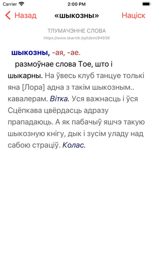 Гэтая праграма — афіцыйны ios-кліент сайта Skarnik.by. Працуе ў рэжыме анлайн.